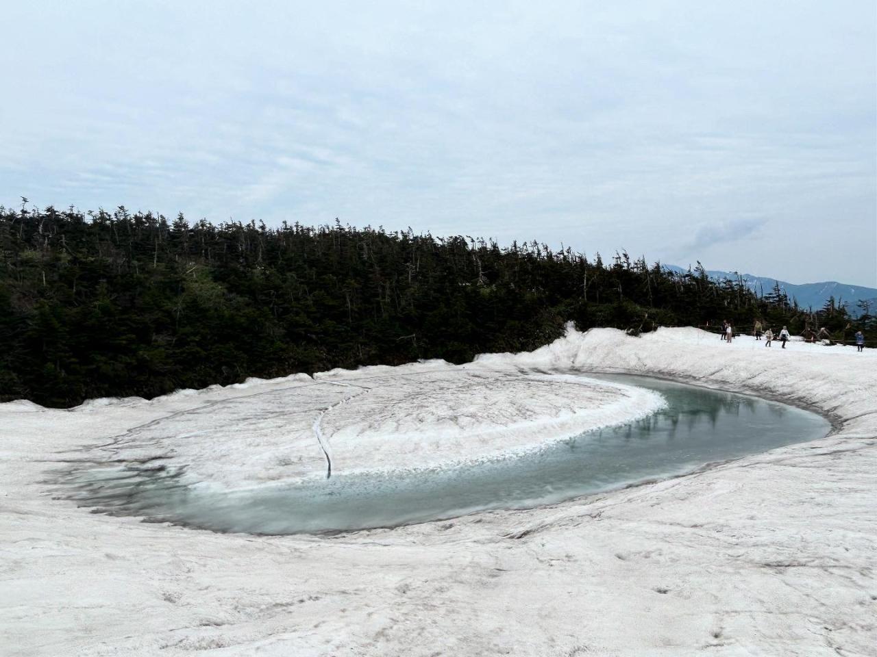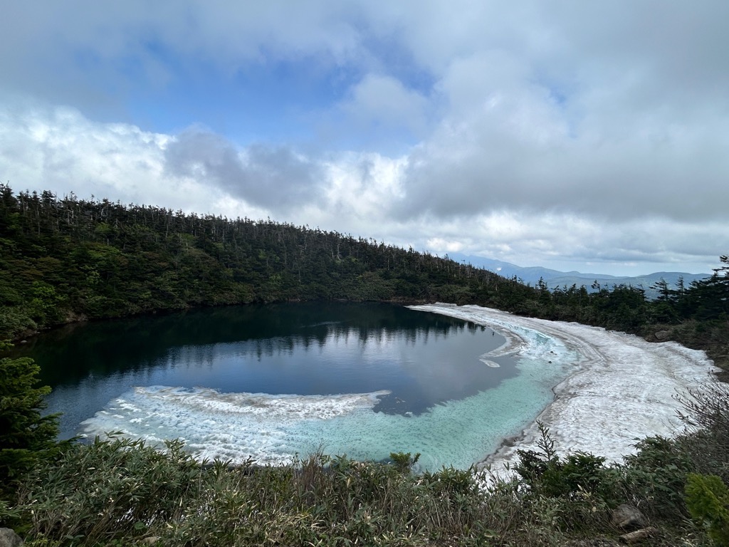 八幡平ドラゴンアイは沼(鏡沼)です。沼の雪解けが進んでおり、沼へ下りることは大変危険です。
